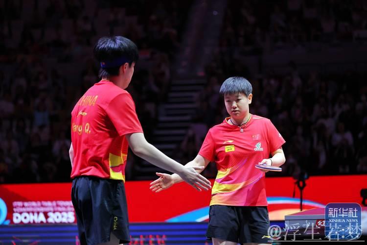 世乒联总决赛混双小组赛:王楚钦孙颖莎对阵黄镇廷杜凯琹精彩瞬间